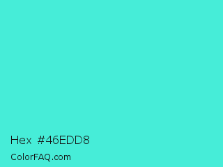 Hex #46edd8 Color is a normal cyan color and the nearest color is Turquoise #40e0d0. Hex code #46edd8 and RGB value is rgb(70,237,216). In RGB color space, this color is composed of 27% red, 93% green, 85% blue, In CMYK color space, this color is composed of 70% cyan, 0% magenta, 9% yellow , 7% black , In HSL color space, this color has a hue angle of 172° , 82% saturation and 60% lightness.
