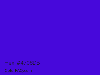 Hex #4708db Color is a normal indigo color and the nearest color is Interdimensional Blue #360ccc. Hex code #4708db and RGB value is rgb(71,8,219). In RGB color space, this color is composed of 28% red, 3% green, 86% blue, In CMYK color space, this color is composed of 68% cyan, 96% magenta, 0% yellow , 14% black , In HSL color space, this color has a hue angle of 258° , 93% saturation and 45% lightness.