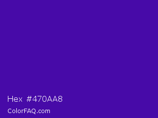 Hex #470aa8 Color is a normal violet color and the nearest color is Daisy Bush #4f2398. Hex code #470aa8 and RGB value is rgb(71,10,168). In RGB color space, this color is composed of 28% red, 4% green, 66% blue, In CMYK color space, this color is composed of 58% cyan, 94% magenta, 0% yellow , 34% black , In HSL color space, this color has a hue angle of 263° , 89% saturation and 35% lightness.