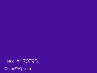 Hex #470f9b Color is a normal violet color and the nearest color is Daisy Bush #4f2398. Hex code #470f9b and RGB value is rgb(71,15,155). In RGB color space, this color is composed of 28% red, 6% green, 61% blue, In CMYK color space, this color is composed of 54% cyan, 90% magenta, 0% yellow , 39% black , In HSL color space, this color has a hue angle of 264° , 82% saturation and 33% lightness.