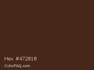Hex #472818 Color is a very dark orange color and the nearest color is Brown Derby #492615. Hex code #472818 and RGB value is rgb(71,40,24). In RGB color space, this color is composed of 28% red, 16% green, 9% blue, In CMYK color space, this color is composed of 0% cyan, 44% magenta, 66% yellow , 72% black , In HSL color space, this color has a hue angle of 20° , 49% saturation and 19% lightness.
