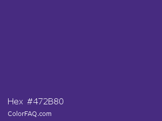 Hex #472b80 Color is a normal indigo color and the nearest color is Spanish Violet #4c2882. Hex code #472b80 and RGB value is rgb(71,43,128). In RGB color space, this color is composed of 28% red, 17% green, 50% blue, In CMYK color space, this color is composed of 45% cyan, 66% magenta, 0% yellow , 50% black , In HSL color space, this color has a hue angle of 260° , 50% saturation and 34% lightness.