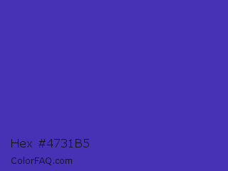 Hex #4731b5 Color is a normal indigo color and the nearest color is Ocean Blue #4f42b5. Hex code #4731b5 and RGB value is rgb(71,49,181). In RGB color space, this color is composed of 28% red, 19% green, 71% blue, In CMYK color space, this color is composed of 61% cyan, 73% magenta, 0% yellow , 29% black , In HSL color space, this color has a hue angle of 250° , 57% saturation and 45% lightness.