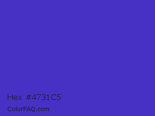 Hex #4731c5 Color is a normal indigo color and the nearest color is Ocean Blue #4f42b5. Hex code #4731c5 and RGB value is rgb(71,49,197). In RGB color space, this color is composed of 28% red, 19% green, 77% blue, In CMYK color space, this color is composed of 64% cyan, 75% magenta, 0% yellow , 23% black , In HSL color space, this color has a hue angle of 249° , 60% saturation and 48% lightness.