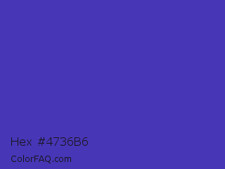 Hex #4736b6 Color is a normal indigo color and the nearest color is Ocean Blue #4f42b5. Hex code #4736b6 and RGB value is rgb(71,54,182). In RGB color space, this color is composed of 28% red, 21% green, 71% blue, In CMYK color space, this color is composed of 61% cyan, 70% magenta, 0% yellow , 29% black , In HSL color space, this color has a hue angle of 248° , 54% saturation and 46% lightness.