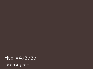 Hex #473735 Color is a dark red color and the nearest color is Taupe #483c32. Hex code #473735 and RGB value is rgb(71,55,53). In RGB color space, this color is composed of 28% red, 22% green, 21% blue, In CMYK color space, this color is composed of 0% cyan, 23% magenta, 25% yellow , 72% black , In HSL color space, this color has a hue angle of 7° , 15% saturation and 24% lightness.