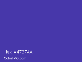 Hex #4737aa Color is a normal indigo color and the nearest color is Ocean Blue #4f42b5. Hex code #4737aa and RGB value is rgb(71,55,170). In RGB color space, this color is composed of 28% red, 22% green, 67% blue, In CMYK color space, this color is composed of 58% cyan, 68% magenta, 0% yellow , 33% black , In HSL color space, this color has a hue angle of 248° , 51% saturation and 44% lightness.