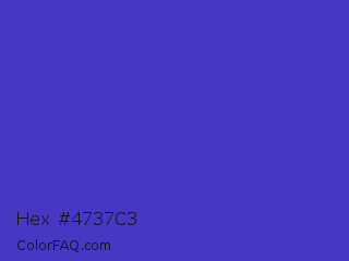 Hex #4737c3 Color is a normal indigo color and the nearest color is Ocean Blue #4f42b5. Hex code #4737c3 and RGB value is rgb(71,55,195). In RGB color space, this color is composed of 28% red, 22% green, 76% blue, In CMYK color space, this color is composed of 64% cyan, 72% magenta, 0% yellow , 24% black , In HSL color space, this color has a hue angle of 247° , 56% saturation and 49% lightness.