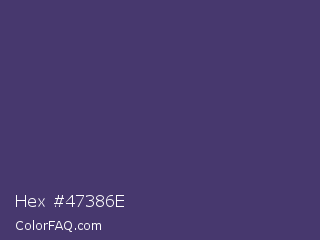 Hex #47386e Color is a normal indigo color and the nearest color is Mulled Wine #4e4562. Hex code #47386e and RGB value is rgb(71,56,110). In RGB color space, this color is composed of 28% red, 22% green, 43% blue, In CMYK color space, this color is composed of 35% cyan, 49% magenta, 0% yellow , 57% black , In HSL color space, this color has a hue angle of 257° , 33% saturation and 33% lightness.