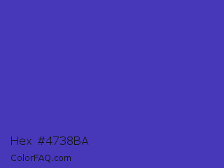 Hex #4738ba Color is a normal indigo color and the nearest color is Ocean Blue #4f42b5. Hex code #4738ba and RGB value is rgb(71,56,186). In RGB color space, this color is composed of 28% red, 22% green, 73% blue, In CMYK color space, this color is composed of 62% cyan, 70% magenta, 0% yellow , 27% black , In HSL color space, this color has a hue angle of 247° , 54% saturation and 47% lightness.