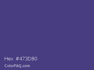 Hex #473d80 Color is a normal indigo color and the nearest color is Dark Slate Blue #483d8b. Hex code #473d80 and RGB value is rgb(71,61,128). In RGB color space, this color is composed of 28% red, 24% green, 50% blue, In CMYK color space, this color is composed of 45% cyan, 52% magenta, 0% yellow , 50% black , In HSL color space, this color has a hue angle of 249° , 35% saturation and 37% lightness.