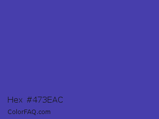 Hex #473eac Color is a normal indigo color and the nearest color is Ocean Blue #4f42b5. Hex code #473eac and RGB value is rgb(71,62,172). In RGB color space, this color is composed of 28% red, 24% green, 67% blue, In CMYK color space, this color is composed of 59% cyan, 64% magenta, 0% yellow , 33% black , In HSL color space, this color has a hue angle of 245° , 47% saturation and 46% lightness.