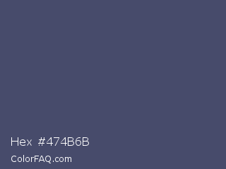Hex #474b6b Color is a normal blue color and the nearest color is Independence #4c516d. Hex code #474b6b and RGB value is rgb(71,75,107). In RGB color space, this color is composed of 28% red, 29% green, 42% blue, In CMYK color space, this color is composed of 34% cyan, 30% magenta, 0% yellow , 58% black , In HSL color space, this color has a hue angle of 233° , 20% saturation and 35% lightness.