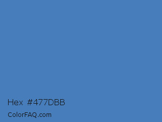 Hex #477dbb Color is a normal blue color and the nearest color is Cyan Blue Azure #4682bf. Hex code #477dbb and RGB value is rgb(71,125,187). In RGB color space, this color is composed of 28% red, 49% green, 73% blue, In CMYK color space, this color is composed of 62% cyan, 33% magenta, 0% yellow , 27% black , In HSL color space, this color has a hue angle of 212° , 46% saturation and 51% lightness.