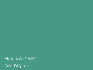 Hex #479b85 Color is a normal cyan color and the nearest color is Zomp #39a78e. Hex code #479b85 and RGB value is rgb(71,155,133). In RGB color space, this color is composed of 28% red, 61% green, 52% blue, In CMYK color space, this color is composed of 54% cyan, 0% magenta, 14% yellow , 39% black , In HSL color space, this color has a hue angle of 164° , 37% saturation and 44% lightness.