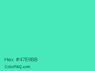 Hex #47e9bb Color is a normal green color and the nearest color is Turquoise #40e0d0. Hex code #47e9bb and RGB value is rgb(71,233,187). In RGB color space, this color is composed of 28% red, 91% green, 73% blue, In CMYK color space, this color is composed of 70% cyan, 0% magenta, 20% yellow , 9% black , In HSL color space, this color has a hue angle of 163° , 79% saturation and 60% lightness.