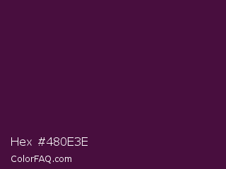 Hex #480e3e Color is a very dark magenta color and the nearest color is Loulou #460b41. Hex code #480e3e and RGB value is rgb(72,14,62). In RGB color space, this color is composed of 28% red, 5% green, 24% blue, In CMYK color space, this color is composed of 0% cyan, 81% magenta, 14% yellow , 72% black , In HSL color space, this color has a hue angle of 310° , 67% saturation and 17% lightness.