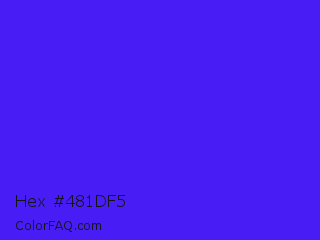 Hex #481df5 Color is a normal indigo color and the nearest color is Han Purple #5218fa. Hex code #481df5 and RGB value is rgb(72,29,245). In RGB color space, this color is composed of 28% red, 11% green, 96% blue, In CMYK color space, this color is composed of 71% cyan, 88% magenta, 0% yellow , 4% black , In HSL color space, this color has a hue angle of 252° , 92% saturation and 54% lightness.