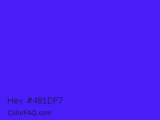 Hex #481df7 Color is a normal indigo color and the nearest color is Han Purple #5218fa. Hex code #481df7 and RGB value is rgb(72,29,247). In RGB color space, this color is composed of 28% red, 11% green, 97% blue, In CMYK color space, this color is composed of 71% cyan, 88% magenta, 0% yellow , 3% black , In HSL color space, this color has a hue angle of 252° , 93% saturation and 54% lightness.