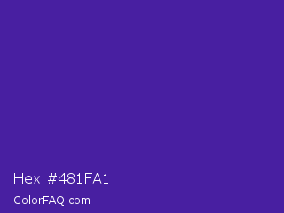 Hex #481fa1 Color is a normal indigo color and the nearest color is Daisy Bush #4f2398. Hex code #481fa1 and RGB value is rgb(72,31,161). In RGB color space, this color is composed of 28% red, 12% green, 63% blue, In CMYK color space, this color is composed of 55% cyan, 81% magenta, 0% yellow , 37% black , In HSL color space, this color has a hue angle of 259° , 68% saturation and 38% lightness.