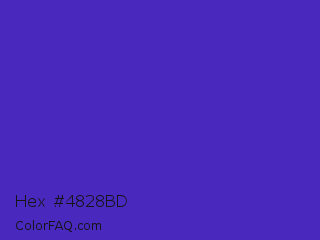 Hex #4828bd Color is a normal indigo color and the nearest color is Ocean Blue #4f42b5. Hex code #4828bd and RGB value is rgb(72,40,189). In RGB color space, this color is composed of 28% red, 16% green, 74% blue, In CMYK color space, this color is composed of 62% cyan, 79% magenta, 0% yellow , 26% black , In HSL color space, this color has a hue angle of 253° , 65% saturation and 45% lightness.