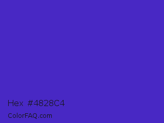 Hex #4828c4 Color is a normal indigo color and the nearest color is Purple Heart Crayola #652dc1. Hex code #4828c4 and RGB value is rgb(72,40,196). In RGB color space, this color is composed of 28% red, 16% green, 77% blue, In CMYK color space, this color is composed of 63% cyan, 80% magenta, 0% yellow , 23% black , In HSL color space, this color has a hue angle of 252° , 66% saturation and 46% lightness.
