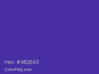 Hex #482ea5 Color is a normal indigo color and the nearest color is Daisy Bush #4f2398. Hex code #482ea5 and RGB value is rgb(72,46,165). In RGB color space, this color is composed of 28% red, 18% green, 65% blue, In CMYK color space, this color is composed of 56% cyan, 72% magenta, 0% yellow , 35% black , In HSL color space, this color has a hue angle of 253° , 56% saturation and 41% lightness.
