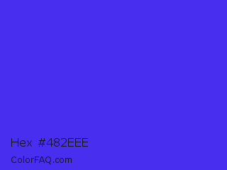 Hex #482eee Color is a normal indigo color and the nearest color is Han Purple #5218fa. Hex code #482eee and RGB value is rgb(72,46,238). In RGB color space, this color is composed of 28% red, 18% green, 93% blue, In CMYK color space, this color is composed of 70% cyan, 81% magenta, 0% yellow , 7% black , In HSL color space, this color has a hue angle of 248° , 85% saturation and 56% lightness.