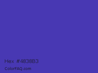 Hex #4838b3 Color is a normal indigo color and the nearest color is Ocean Blue #4f42b5. Hex code #4838b3 and RGB value is rgb(72,56,179). In RGB color space, this color is composed of 28% red, 22% green, 70% blue, In CMYK color space, this color is composed of 60% cyan, 69% magenta, 0% yellow , 30% black , In HSL color space, this color has a hue angle of 248° , 52% saturation and 46% lightness.