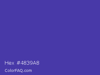 Hex #4839a8 Color is a normal indigo color and the nearest color is Ocean Blue #4f42b5. Hex code #4839a8 and RGB value is rgb(72,57,168). In RGB color space, this color is composed of 28% red, 22% green, 66% blue, In CMYK color space, this color is composed of 57% cyan, 66% magenta, 0% yellow , 34% black , In HSL color space, this color has a hue angle of 248° , 49% saturation and 44% lightness.