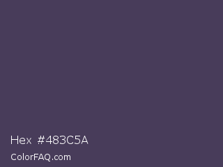 Hex #483c5a Color is a dark violet color and the nearest color is Gun Powder #414257. Hex code #483c5a and RGB value is rgb(72,60,90). In RGB color space, this color is composed of 28% red, 24% green, 35% blue, In CMYK color space, this color is composed of 20% cyan, 33% magenta, 0% yellow , 65% black , In HSL color space, this color has a hue angle of 264° , 20% saturation and 29% lightness.