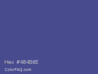 Hex #484b8e Color is a normal blue color and the nearest color is Victoria #534491. Hex code #484b8e and RGB value is rgb(72,75,142). In RGB color space, this color is composed of 28% red, 29% green, 56% blue, In CMYK color space, this color is composed of 49% cyan, 47% magenta, 0% yellow , 44% black , In HSL color space, this color has a hue angle of 237° , 33% saturation and 42% lightness.