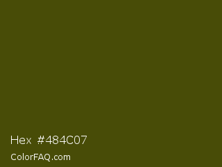 Hex #484c07 Color is a very dark yellow color and the nearest color is Verdun Green #495400. Hex code #484c07 and RGB value is rgb(72,76,7). In RGB color space, this color is composed of 28% red, 30% green, 3% blue, In CMYK color space, this color is composed of 5% cyan, 0% magenta, 91% yellow , 70% black , In HSL color space, this color has a hue angle of 63° , 83% saturation and 16% lightness.