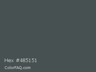 Hex #485151 Color is a dark cyan color and the nearest color is Abbey #4c4f56. Hex code #485151 and RGB value is rgb(72,81,81). In RGB color space, this color is composed of 28% red, 32% green, 32% blue, In CMYK color space, this color is composed of 11% cyan, 0% magenta, 0% yellow , 68% black , In HSL color space, this color has a hue angle of 180° , 6% saturation and 30% lightness.