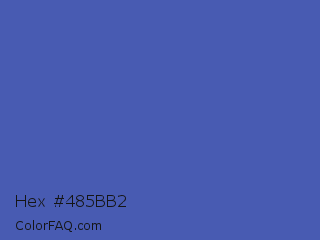 Hex #485bb2 Color is a normal blue color and the nearest color is Liberty #545aa7. Hex code #485bb2 and RGB value is rgb(72,91,178). In RGB color space, this color is composed of 28% red, 36% green, 70% blue, In CMYK color space, this color is composed of 60% cyan, 49% magenta, 0% yellow , 30% black , In HSL color space, this color has a hue angle of 229° , 42% saturation and 49% lightness.