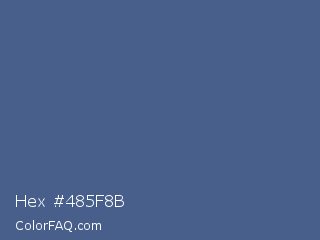 Hex #485f8b Color is a normal blue color and the nearest color is Queen Blue #436b95. Hex code #485f8b and RGB value is rgb(72,95,139). In RGB color space, this color is composed of 28% red, 37% green, 55% blue, In CMYK color space, this color is composed of 48% cyan, 32% magenta, 0% yellow , 45% black , In HSL color space, this color has a hue angle of 219° , 32% saturation and 41% lightness.