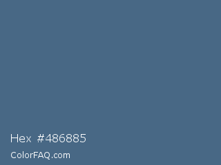 Hex #486885 Color is a normal blue color and the nearest color is Bismark #497183. Hex code #486885 and RGB value is rgb(72,104,133). In RGB color space, this color is composed of 28% red, 41% green, 52% blue, In CMYK color space, this color is composed of 46% cyan, 22% magenta, 0% yellow , 48% black , In HSL color space, this color has a hue angle of 209° , 30% saturation and 40% lightness.