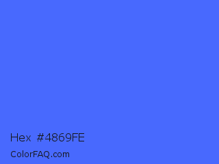 Hex #4869fe Color is a light blue color and the nearest color is Ultramarine Blue #4166f5. Hex code #4869fe and RGB value is rgb(72,105,254). In RGB color space, this color is composed of 28% red, 41% green, 100% blue, In CMYK color space, this color is composed of 72% cyan, 59% magenta, 0% yellow , 0% black , In HSL color space, this color has a hue angle of 229° , 99% saturation and 64% lightness.
