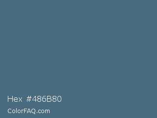 Hex #486b80 Color is a normal blue color and the nearest color is Bismark #497183. Hex code #486b80 and RGB value is rgb(72,107,128). In RGB color space, this color is composed of 28% red, 42% green, 50% blue, In CMYK color space, this color is composed of 44% cyan, 16% magenta, 0% yellow , 50% black , In HSL color space, this color has a hue angle of 203° , 28% saturation and 39% lightness.