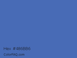 Hex #486bb6 Color is a normal blue color and the nearest color is San Marino #456cac. Hex code #486bb6 and RGB value is rgb(72,107,182). In RGB color space, this color is composed of 28% red, 42% green, 71% blue, In CMYK color space, this color is composed of 60% cyan, 41% magenta, 0% yellow , 29% black , In HSL color space, this color has a hue angle of 221° , 43% saturation and 50% lightness.