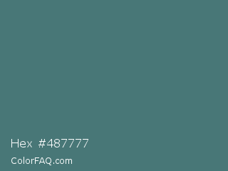 Hex #487777 Color is a normal cyan color and the nearest color is Faded Jade #427977. Hex code #487777 and RGB value is rgb(72,119,119). In RGB color space, this color is composed of 28% red, 47% green, 47% blue, In CMYK color space, this color is composed of 39% cyan, 0% magenta, 0% yellow , 53% black , In HSL color space, this color has a hue angle of 180° , 25% saturation and 37% lightness.