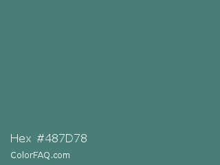 Hex #487d78 Color is a normal cyan color and the nearest color is Faded Jade #427977. Hex code #487d78 and RGB value is rgb(72,125,120). In RGB color space, this color is composed of 28% red, 49% green, 47% blue, In CMYK color space, this color is composed of 42% cyan, 0% magenta, 4% yellow , 51% black , In HSL color space, this color has a hue angle of 174° , 27% saturation and 39% lightness.