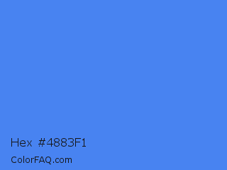 Hex #4883f1 Color is a light blue color and the nearest color is Blueberry #4f86f7. Hex code #4883f1 and RGB value is rgb(72,131,241). In RGB color space, this color is composed of 28% red, 51% green, 95% blue, In CMYK color space, this color is composed of 70% cyan, 46% magenta, 0% yellow , 5% black , In HSL color space, this color has a hue angle of 219° , 86% saturation and 61% lightness.