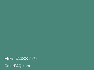 Hex #488779 Color is a normal cyan color and the nearest color is Wintergreen Dream #56887d. Hex code #488779 and RGB value is rgb(72,135,121). In RGB color space, this color is composed of 28% red, 53% green, 47% blue, In CMYK color space, this color is composed of 47% cyan, 0% magenta, 10% yellow , 47% black , In HSL color space, this color has a hue angle of 167° , 30% saturation and 41% lightness.