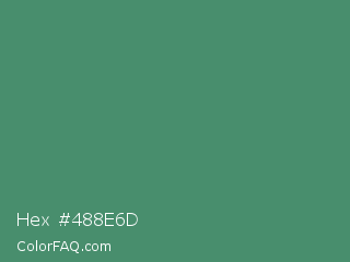 Hex #488e6d Color is a normal green color and the nearest color is Viridian #40826d. Hex code #488e6d and RGB value is rgb(72,142,109). In RGB color space, this color is composed of 28% red, 56% green, 43% blue, In CMYK color space, this color is composed of 49% cyan, 0% magenta, 23% yellow , 44% black , In HSL color space, this color has a hue angle of 152° , 33% saturation and 42% lightness.