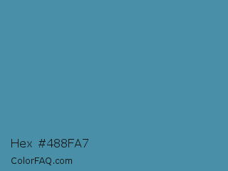 Hex #488fa7 Color is a normal blue color and the nearest color is Steel Blue #4682b4. Hex code #488fa7 and RGB value is rgb(72,143,167). In RGB color space, this color is composed of 28% red, 56% green, 65% blue, In CMYK color space, this color is composed of 57% cyan, 14% magenta, 0% yellow , 35% black , In HSL color space, this color has a hue angle of 195° , 40% saturation and 47% lightness.