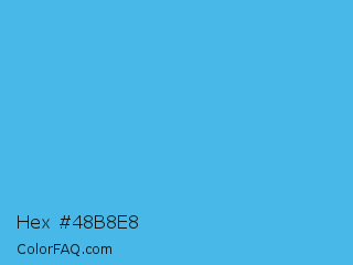 Hex #48b8e8 Color is a normal blue color and the nearest color is Picton Blue #45b1e8. Hex code #48b8e8 and RGB value is rgb(72,184,232). In RGB color space, this color is composed of 28% red, 72% green, 91% blue, In CMYK color space, this color is composed of 69% cyan, 21% magenta, 0% yellow , 9% black , In HSL color space, this color has a hue angle of 198° , 78% saturation and 60% lightness.