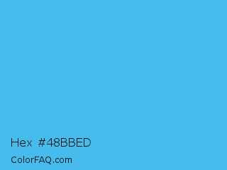 Hex #48bbed Color is a light blue color and the nearest color is Picton Blue #45b1e8. Hex code #48bbed and RGB value is rgb(72,187,237). In RGB color space, this color is composed of 28% red, 73% green, 93% blue, In CMYK color space, this color is composed of 70% cyan, 21% magenta, 0% yellow , 7% black , In HSL color space, this color has a hue angle of 198° , 82% saturation and 61% lightness.
