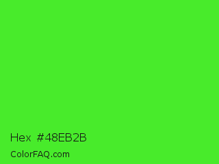 Hex #48eb2b Color is a normal green color and the nearest color is Neon Green #39ff14. Hex code #48eb2b and RGB value is rgb(72,235,43). In RGB color space, this color is composed of 28% red, 92% green, 17% blue, In CMYK color space, this color is composed of 69% cyan, 0% magenta, 82% yellow , 8% black , In HSL color space, this color has a hue angle of 111° , 83% saturation and 55% lightness.