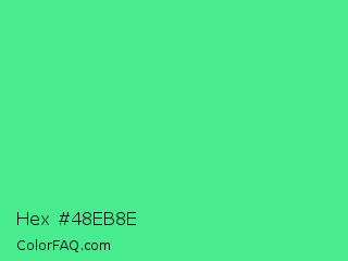 Hex #48eb8e Color is a normal green color and the nearest color is Very Light Malachite Green #64e986. Hex code #48eb8e and RGB value is rgb(72,235,142). In RGB color space, this color is composed of 28% red, 92% green, 56% blue, In CMYK color space, this color is composed of 69% cyan, 0% magenta, 40% yellow , 8% black , In HSL color space, this color has a hue angle of 146° , 80% saturation and 60% lightness.